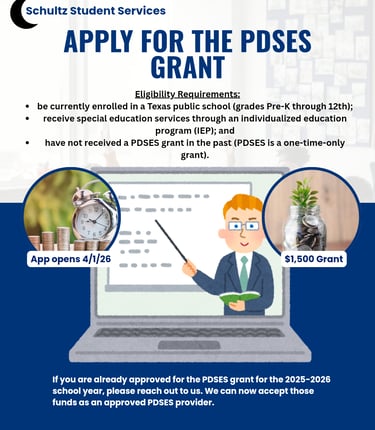 At Schultz Student Services, we engage in close collaboration with educational institutions and businesses to develop customized coaching solutions that significantly enhance student achievement. Notably, we have recently become an approved vendor for the PDSES grant through the Texas Education Agency.